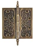 Solid brass construction with solid brass screws included Steel hinge pin for added durability and strength Solid Brass Finials Included Decorative intricate design forged directly into the hinge 4-Inch By 4-Inch size hinge sold individually