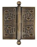Solid brass construction with solid brass screws included Steel hinge pin for added durability and strength Solid Brass Finials Included Decorative intricate design forged directly into the hinge 4.5-Inch By 4.5-Inch size hinge sold individually